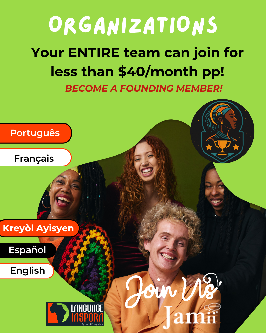 LANGUAGE & DIASPORA: LEARN ENGLISH, FRENCH, HAITIAN CREOLE, PORTUGUESE, OR SPANISH